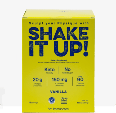 Shake It Up! es una mezcla premium de aislado de proteína de suero de leche y concentrado de proteína de leche, formulada específicamente para ayudar en el control del peso. Esta fórmula con nutrientes de alta calidad, combinada con fibra prebiótica, es reconocida por su capacidad para proporcionar saciedad y controlar el apetito, promoviendo una digestión saludable y mejorando tus resultados de pérdida de peso y tus objetivos de lograr una alimentación saludable.*